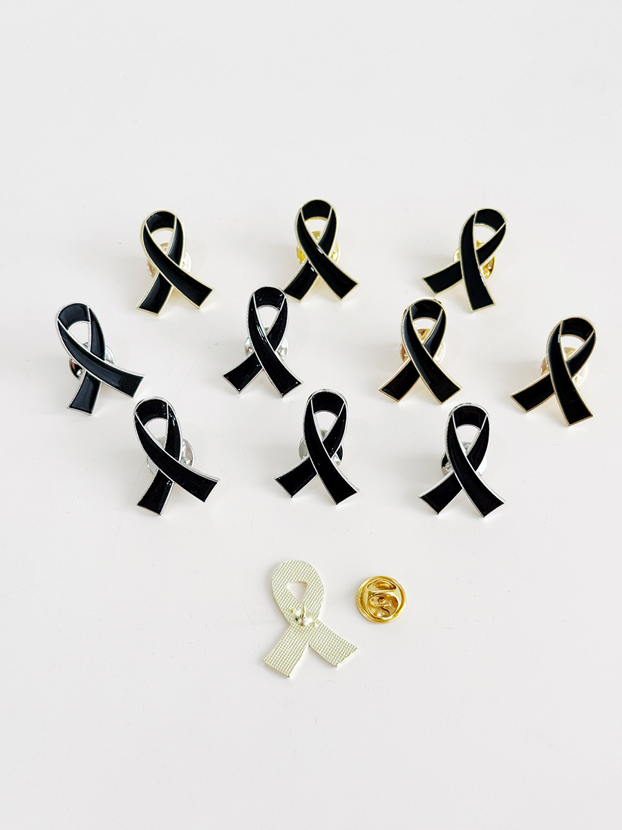 เข็มกลัดริบบิ้นสีดำเป็นไอเท็มสำคัญที่ควรมีไว้ติดเสื้อเพื่อแสดงความเคารพและร่วมไว้อาลัยในช่วงเวลาสำคัญ สามารถติดบนเสื้อเชิ้ต เสื้อเบลาส์ หรือเสื้อคลุมได้ เข็มกลัดทำมาจากโลหะชุบขอบทอง ตัวเข้มกลัดมีตัวล็อคด้านหลังให้ ไอเท็มสำคัญที่แสดงความสุภาพและเคารพ ควรมีติดตู้ไว้เลยค่ะ