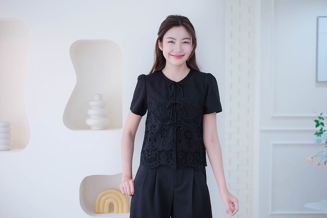 เสื้อตัวนี้คือสวยหรูและดีไซน์จัดเต็มมากๆแขนสั้นสีดำตัวนี้คือที่สุดของความ Classy ที่สาวๆต้องมี คอเสื้อแต่งขอบลูกไม้ ช่วงด้านล่างเป็นลูกไม้ฉลุลายดอกไม้โดดเด่นมาก ดีเทลผูกเชือก 3 จุดด้านหน้าทำให้เสื้อดูมีลูกเล่น มีซับในทั้งตัวทำให้สวมใส่สบายไม่ระคายเคืองผิว แมตช์กับกางเกงสแล็คสีดำหรือกระโปรงทรงสอบสีเข้มได้ลุคที่ดูดีและเรียบร้อย ใส่คู่กับกางเกงยีนส์เอวสูงสีเข้ม ก็ดูดีมีสไตล์ไปอีกแบบ ไอเท็มที่ไม่ควรพลาด คุ้มค่าเกินราคา
