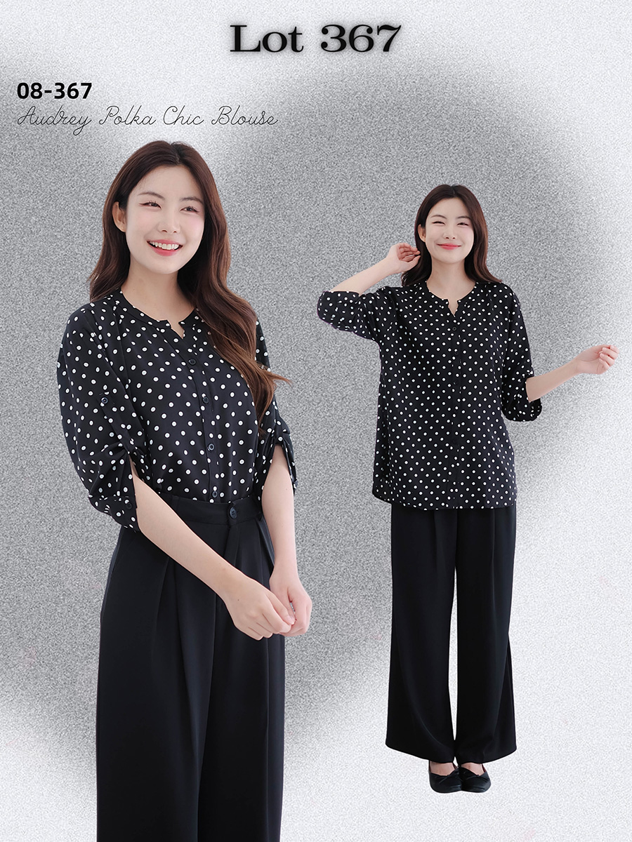 เสื้อตัวนี้คือคลาสสิกและชิคมากๆเป็นสไตล์ Timeless Retro ที่ใส่เมื่อไหร่ก็ดูดีไม่มีเอ้าท์!เสื้อแขนยาว 4 ส่วนมาในโทนดำ-ขาวลายจุด ทรงคอวีทำให้ช่วงคอดูเพรียว เป็นทรงหลวมๆ ใส่สบายมากและพรางรูปร่างได้ดีสุดๆ มีกระดุมเรียงลงมาด้านหน้าดูคลุมโทน แมตช์กับกางเกงหรือกระโปรงได้ลุค working woman สุดเนี้ยบ ใส่ไปทำงาน งานเลี้ยงแบบชิลล์ๆ หรือไปคาเฟ่ ไอเท็มนี้คือต้องมีติดตู้ ไม่ผิดหวังแน่นอน