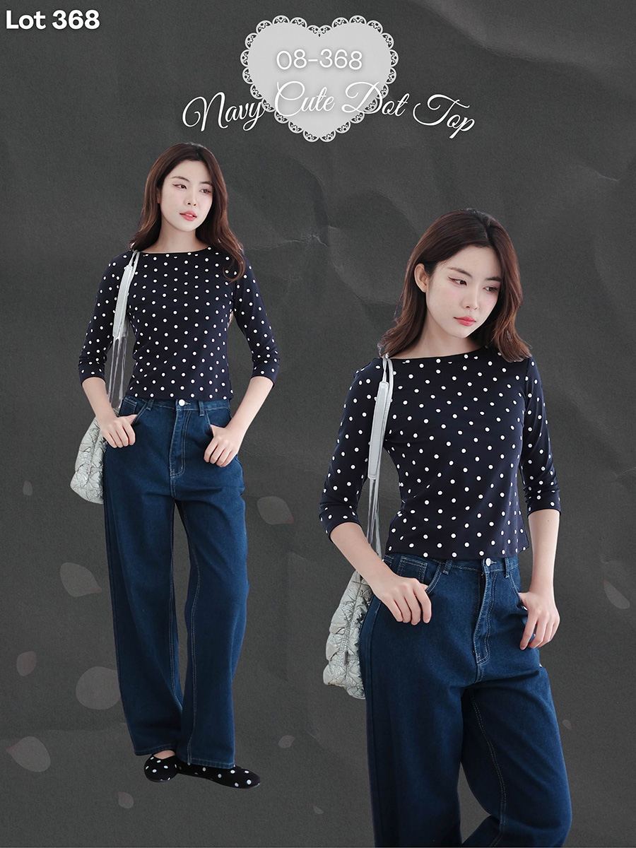 Polka Dot Queen เสื้อลายจุดที่คลาสสิกและน่ารักมากๆ แขนยาว 3 ส่วนกำลังดีทำให้รูปร่างดูเพรียวสวย สีกรมท่าลายจุดสีขาวขนาดกำลังดีทำให้เสื้อดูมีชีวิตชีวาแต่ยังคงความเรียบหรู ทรงพอดีตัวทำให้ใส่แล้วดูเพรียวและหุ่นดีมากๆ ใส่คู่กับกางเกงยีนส์เอวสูงสีเข้มหรือกระโปรงก็ดูดีมีสไตล์ Must Have เพราะให้ลุคที่ดูน่ารักได้ง่ายๆแถมยังดูคลาสสิกไม่ต้องกลัวเอ้าท์ ต้องจัดด่วน!