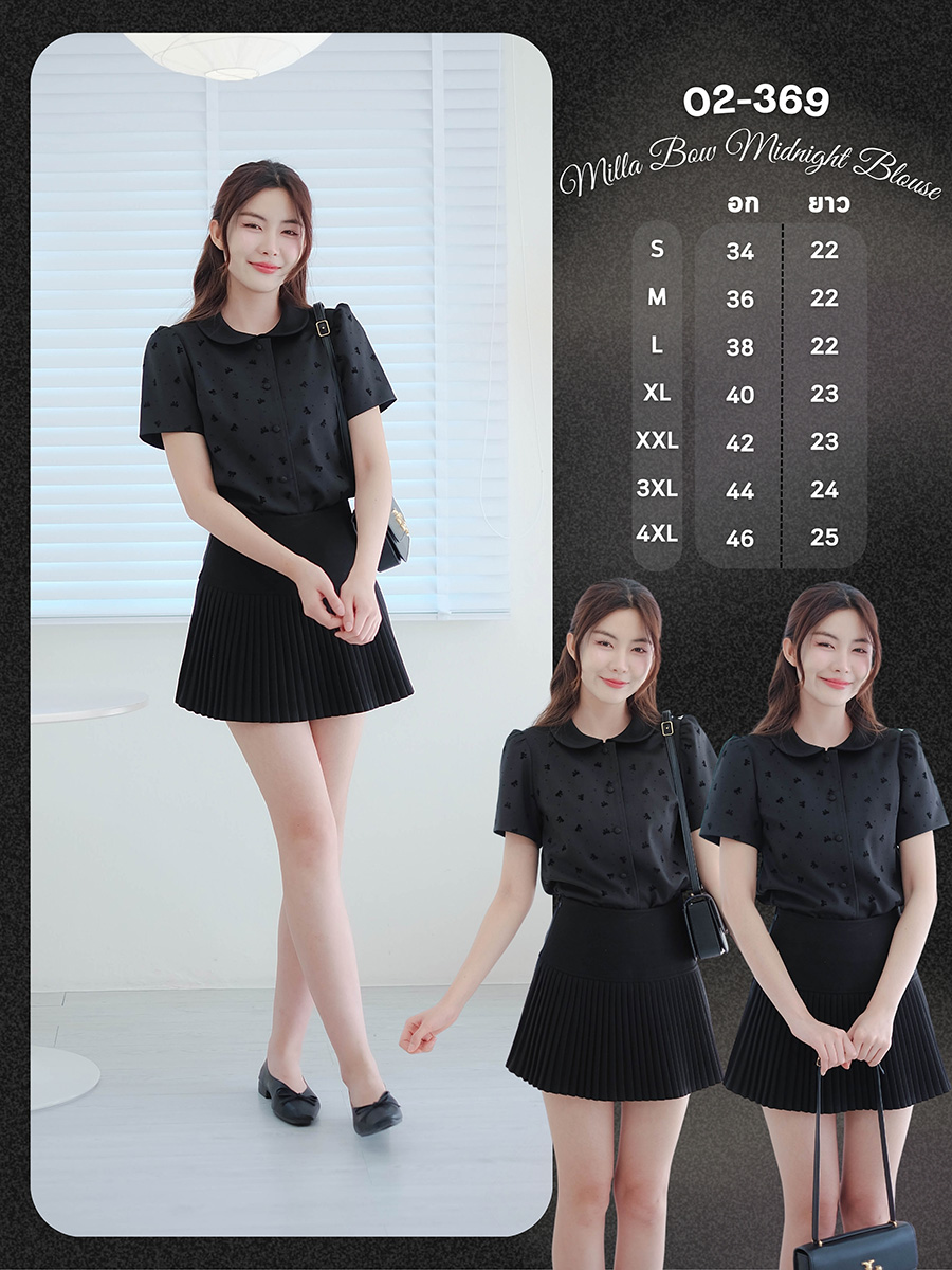 เสื้อลายโบว์สุดคิ้วท์สวยสุภาพมีสไตล์!คอปกบัวสุดคลาสสิกให้ลุคที่ดูอ่อนหวานและน่ารักทันทีที่ใส่ ตัวเสื้อสีดำมีลายโบว์เล็กๆเป็นกำมะหยี่ทำให้ลายดูมีเท็กซ์เจอร์และความหรูหรา ใช้กระดุมเม็ดกลมสีดำเรียงลงมาด้านหน้าดูคลุมโทนและเนี้ยบ จะแมตช์กับกางเกงสแล็คหรือกระโปรงทรงสอบได้ลุคที่ดูดีและเรียบร้อย ใส่ทำงาน งานพิธีการ หรือทุกโอกาสที่ต้องการความสุภาพเป็นพิเศษ ได้ทุกโอกาส ใครชอบความเนี้ยบแบบลูกคุณห้ามพลาด!