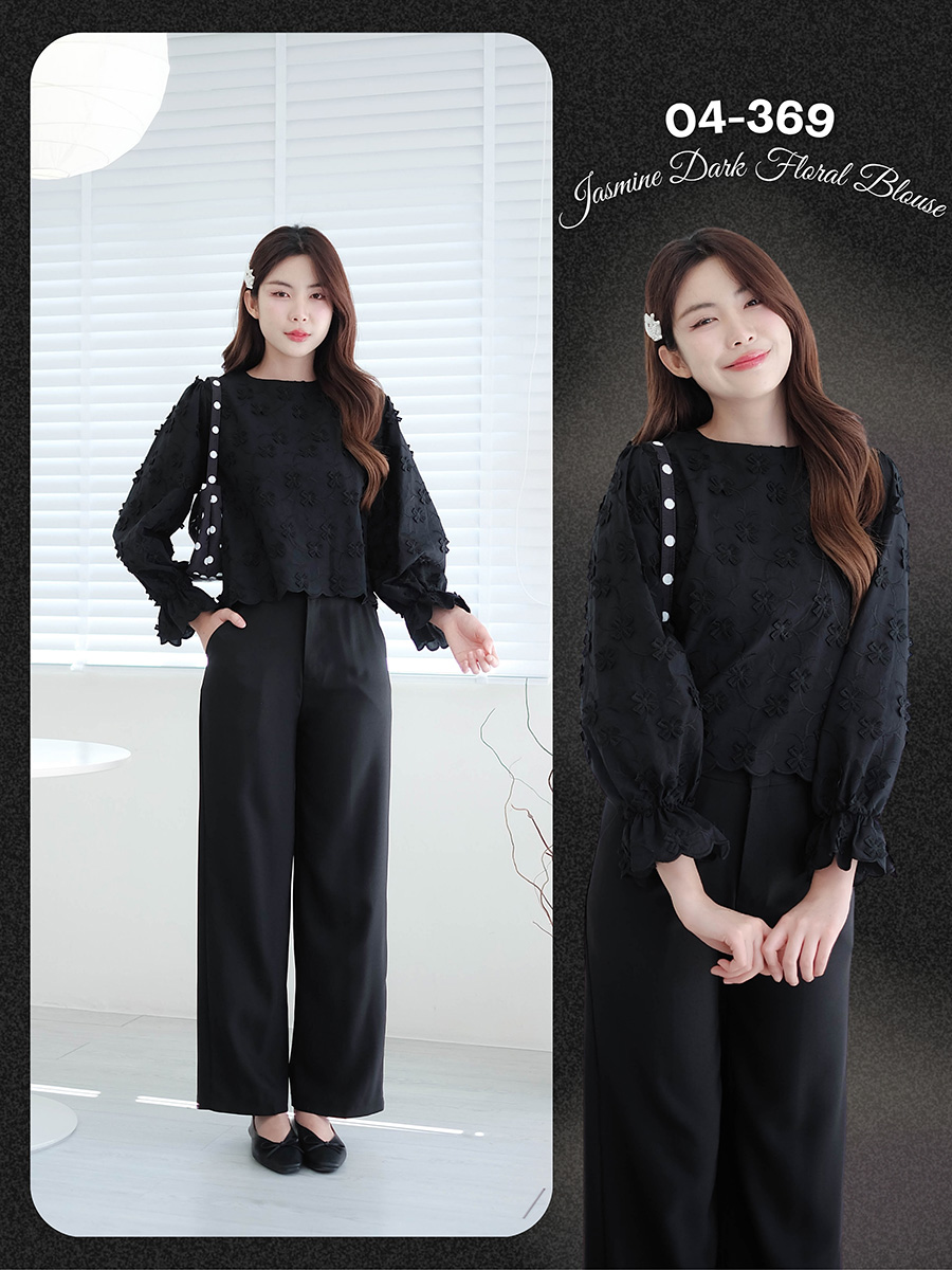 เสื้อลายปัก3D ที่'สวยตะโกน'กว่าใครแขนยาวสีดำที่มีงานปักลายดอกไม้ 3 มิติทั่วตัวลายปักนูนออกมาจากพื้นผ้าทำให้เสื้อดูมีมิติและหรูหรามาก แขนเสื้อทรงพองๆนิดพร้อมปลายแขนระบายเป็นชั้นๆสุดคิ้วท์!ชายเสื้อตัดหยัก ทำให้เสื้อดูอ่อนหวาน แมตช์กับกระโปรงหรือกางเกง ใส่ทำงาน ใส่เที่ยวคือได้หมด ดีไซน์หรูหราขนาดนี้คือของมันต้องมีจริงๆใส่แล้วได้ลุคที่ดูแพงและไม่ซ้ำใคร พลาดไม่ได้เลยนะ!