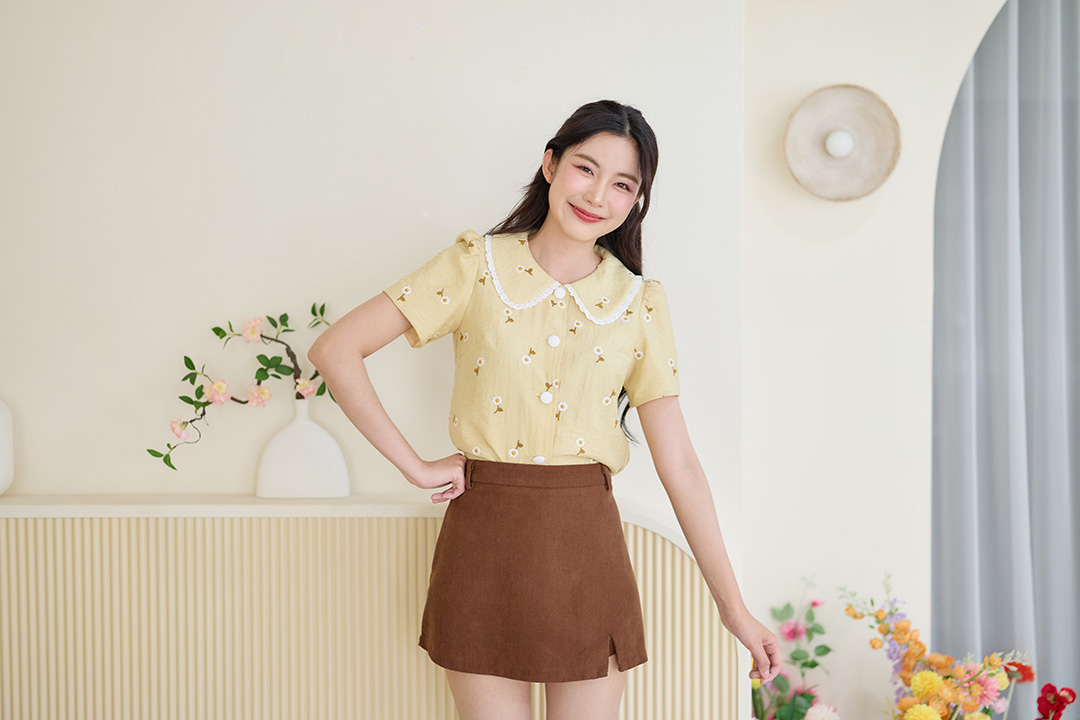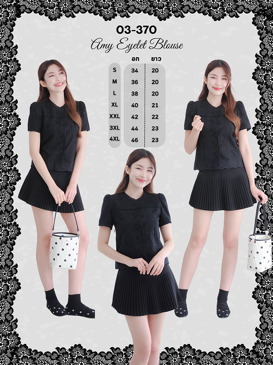 คุณหนูยืนหนึ่งถ้าอยากได้ลุคที่ดูแพงมีมิติและมั่นใจตัวนี้คือคำตอบ เสื้อแขนสั้นสีดำคอเสื้อแต่งขอบลูกไม้ฉลุเล็กน้อย ทำให้คอดูละมุน ผ้าฉลุลายดอกไม้ทั่วทั้งตัวทำให้เสื้อดูมีมิติและหรูหรามาก ต่อลูกไม้ถักแนวนอนบริเวณช่วงอกและชายเสื้อทำให้เสื้อดูประณีตและวินเทจยิ่งขึ้น กระดุมเรียงหน้า มีซับในทั้งตัวทำให้สวมใส่สบายไม่ระคายผิว ใส่คู่กับกระโปรงยาวผ้าพลิ้วๆก็พร้อมออกงานเลี้ยงแบบเรียบหรู เสื้อตัวเดียวเอาอยู่ทุกอีเวนต์เพราะดีไซน์แน่นมาก ต้องจัด!