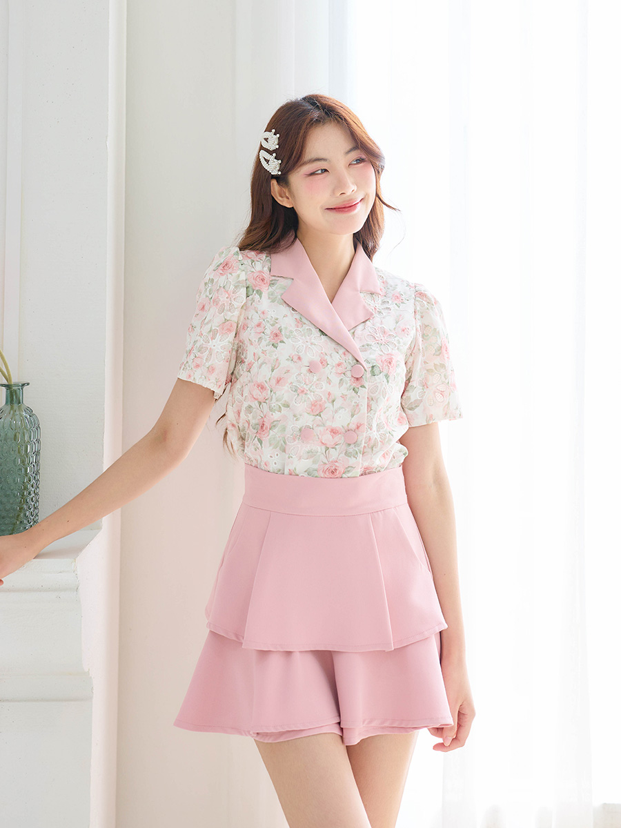 สาวหวานต้องไม่พลาดไอเท็มนี้ น่ารักมาก ดีเทลแน่นกับเสื้อเนื้อผ้าคอตตอนฉลุลายดอกไม้งานปริ้นลายดอกไม้รอบตัว มีซับในทั้งตัว ช่วงคอวีใช้ผ้าพื้นสีชมพู เนื้อผ้าแบบมี texture ในตัว แต่งกระดุมคู่เรียงหน้า แมทกับกระโปรงหรือกางเกงก็น่ารัก ไอเท็มนี้แนะนำเลย งานพรีเมียมสวยมากๆ คุ้มเกินราคา