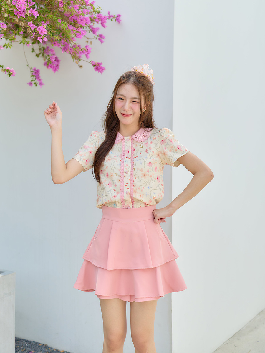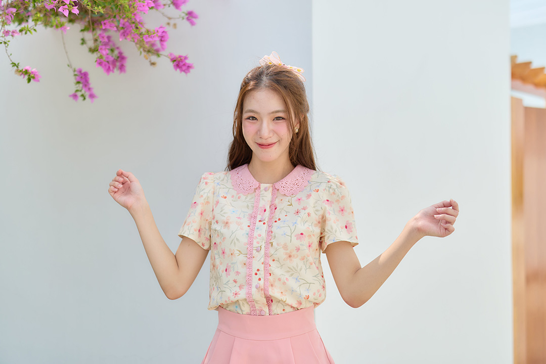 ตัวนี้ยืนหนึ่งเรื่องความหวานละมุนในทุกดีเทลจริงๆ เสื้อโทนสีครีมที่มาพร้อมกับลายดอกไม้น่ารักๆ เป็นผ้า Cotton ใส่ซับในให้ทั้งตัว คอปกถักสีชมพูสุดเนี๊ยบ กระดุมเรียงตามแนวกลางของเสื้อสามารถใช้งานได้จริง แต่งลูกไม้สีชมพูที่สาปเสื้อทั้งสองข้าง ทำให้ดีไซน์ดูทั้งหวานและเรียบร้อยในเวลาเดียวกัน สามารถใส่เป็น everyday ลุคได้จับแมทช์กับกางเกง/กระโปรงก็จะออกมาน่ารักเรียบร้อย สาวหวานกดเอฟแบบไม่ต้องลังเลเลยค่าาา