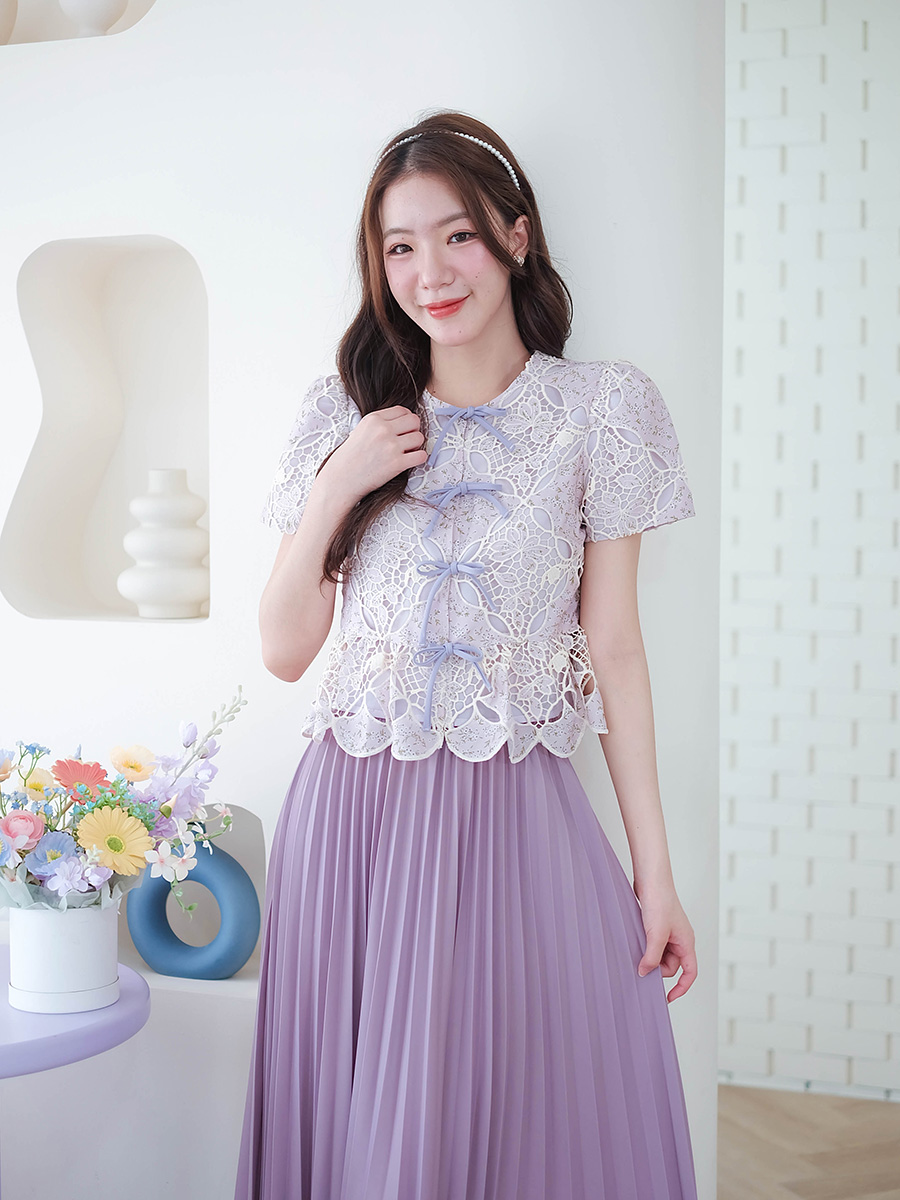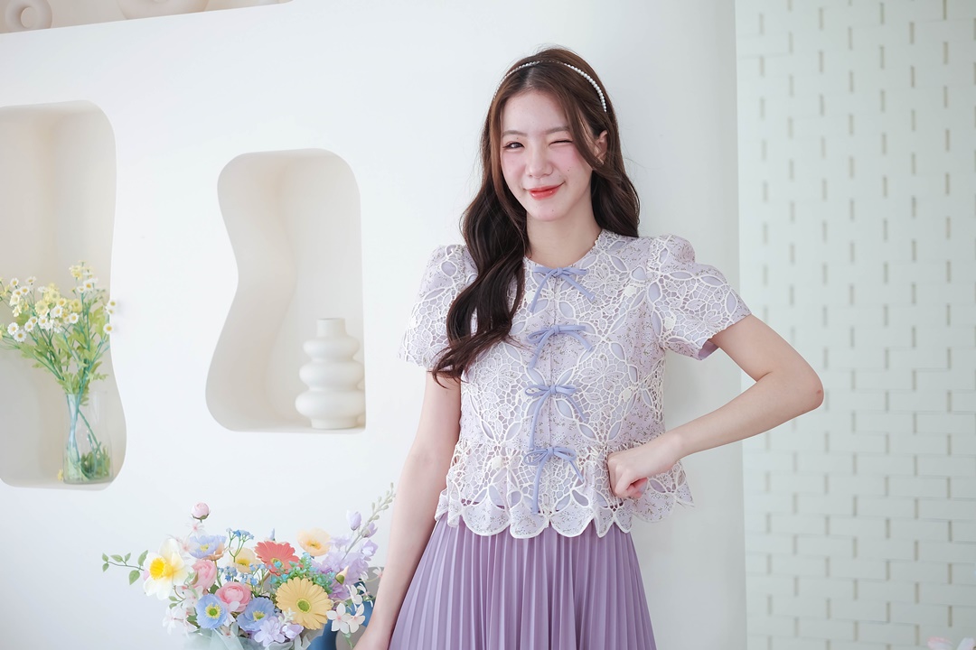 สวยปังไม่ไหว ห้ามพลาดเลย รุ่นนี้บอกเลยว่าสวยมาก เต็ม 10 ไม่มีหักกับเสื้อผ้า Cotton ฉลุลายลูกไม้ ดีไซน์เป็นโบว์ผูกเรียงด้านหน้า มีกระดุมซ่อนสาปเสื้อด้านใน ซับในทั้งตัว ชายระบายเป็นแบบชายเชิงตัดสามลูกไม้อย่างสวยเลย ลุคคุณหนูหวานๆ แมทกับขาสั้นหรือขายาว ดูสวยแพง ใส่ทำงานก็ได้ใส่เที่ยวก็น่ารัก รุ่นนี้จัดไปไม่ผิดหวังจริงๆ