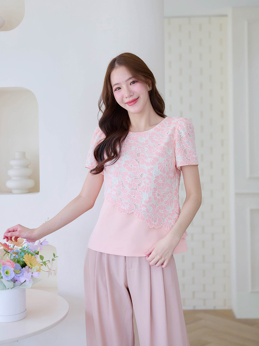 สาวหวานห้ามพลาดเลย ไอเท็มนี้ดีไซน์ได้สวยเก๋สุดๆ แต่งได้ 2 ลุคไม่ซ้ำใคร กับเสื้อแขนสั้นผ้า Cotton เนื้อนิ่มมาก ดีเทลอัดแน่นใช้ผ้าลูกไม้ฉลุลายดีไซน์ตัดแบบเฉียงดันด้วยซับในสีครีม ต่อด้วยเสื้อตัวในเป็นผ้าพื้นสีชมพูได้อารมณ์เหมือนใส่เสื้อ 2 ชั้น ได้ลุคน่ารักๆ หรือแบบปล่อยชายก็ดูเป็นลุคใส่สบายๆ แมทกับกระโปรงหรือกางเกงก็น่ารัก ใส่ทำงานก็ได้ใส่เที่ยวก็น่ารัก รุ่นนี้จัดไปไม่ผิดหวังจริงๆ
