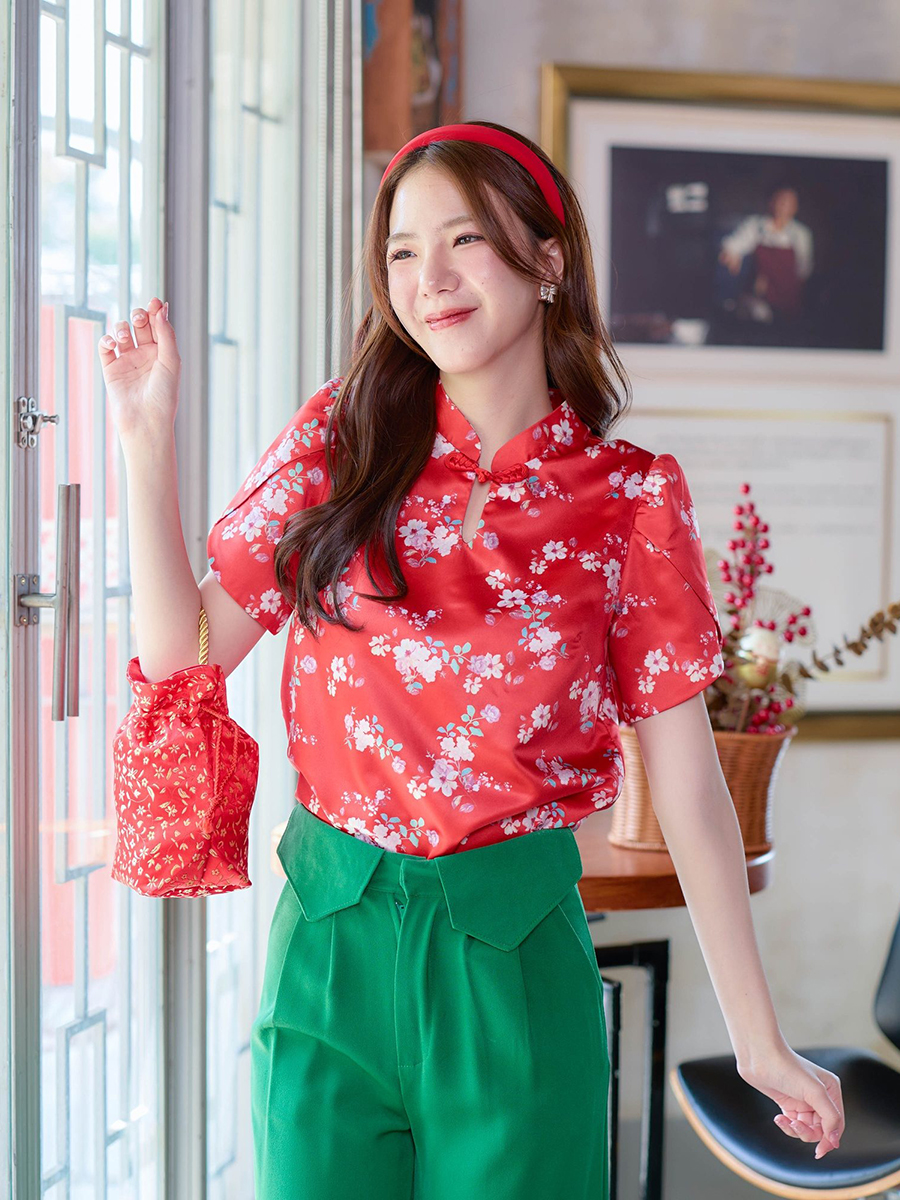 รุ่นนี้เลือกใช้ผ้าไหมซาตินลายดอกโทนหวานๆ เป็นลายดอกสีขาวตัดกับพื้นสีส้ม ให้อารมณ์ตรุษจีนสุดๆ ใส่รับทรัพย์กันไปเลย กับ เสื้อคอจีนลายดอก ทรงแขนกลีบบัว ติดกระดุมจีนช่วงคอ ทรงใส่ง่ายแมทกับกางเกงแดงหรือกางเกงขาก็น่ารัก งานตัดพรีเมียม ซับในทั้งตัว จัดไปไม่ผิดหวังแน่นอนคะ การันตีเลย