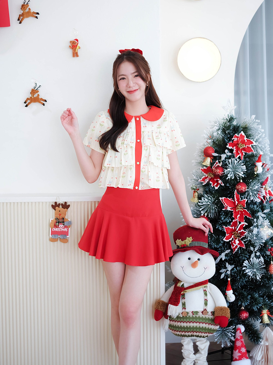 ลุคหวานๆน่ารักๆกับเสื้อระบายโทนสีเหลืองผ้า Cotton งานปริ้นลายดอกไม้สีสด ตัดด้วยคอปกสีแดง ด้านหน้าแต่งระบาย 3 ชั้น ลุคคุณหนูหวานๆ แมทกับขาสั้นหรือขายาว ใส่ทำงานก็ได้ใส่เที่ยวก็น่ารัก จัดไปรับรอง ไม่ผิดหวังแน่นอน