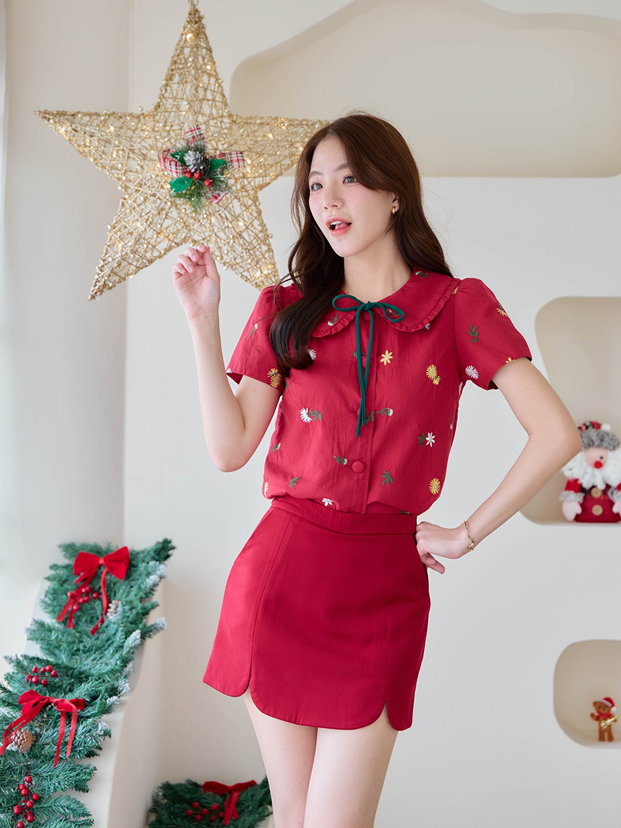 คริสมาสต์นี้แนะนำรายการนี้เลยเป็น 1 ไอเท็มที่ภูมิใจนำเสนอมากๆเลยค่ะ โทนสีแดงช่วงคอปกแต่งระบายเล็กๆ +งานปักดอกไม้เล็กๆรอบตัว เนื้อผ้า Cotton เนื้อดี ช่วงคอมีสายสีเขียวผูกเป็นโบว์น่ารักๆ กระดุมเรียงหน้า มีซับในไอเท็มนี้แนะนำเลย คริสมาส หรือ ตรุษจีน จัดตัวนี้ไปสวยปังแน่นอน