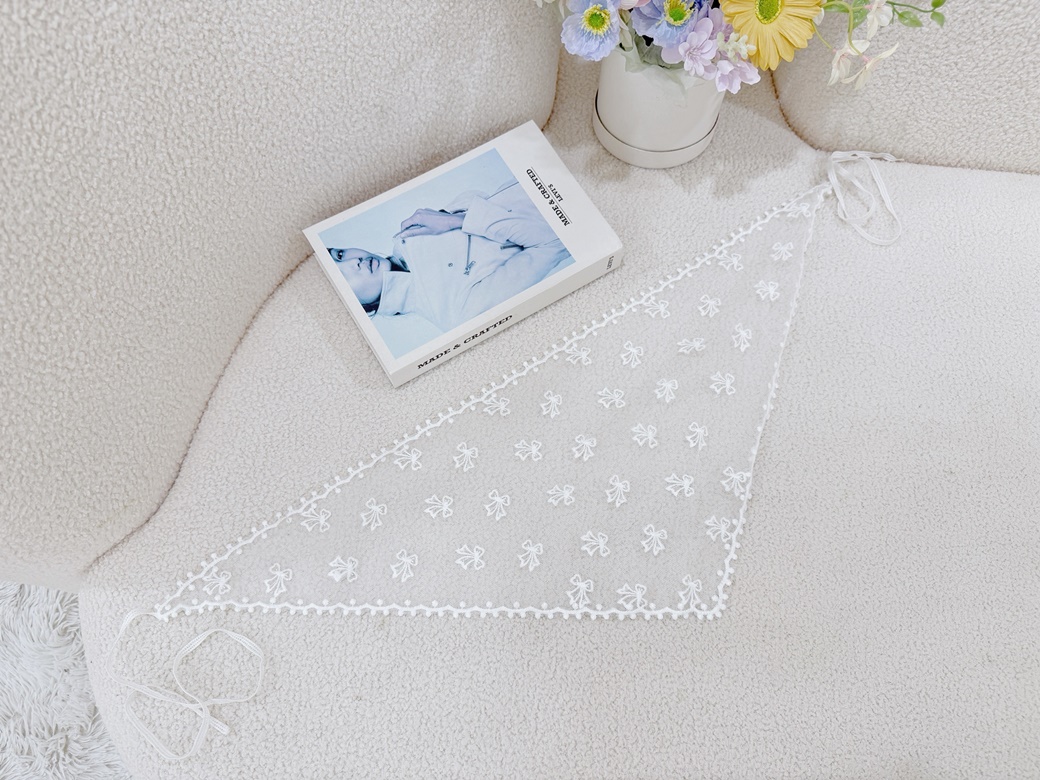 ผ้าลูกไม้ดีไซน์สุดคิ้วท์! มาพร้อมกับลายโบว์ปักเล็กๆ ทั่วทั้งผืนให้ลุคที่ดูน่ารักหวานๆและดูดีสุดๆ สามารถใช้เป็นผ้าโพกผมให้ลุคที่ดูเก๋ หรือจะใช้เป็นผ้าพันคอเก๋ๆ ก็ได้หมด เป็นอีกหนึ่งไอเทมที่ช่วยเพิ่มความน่ารักให้ชุดของคุณได้อย่างลงตัว