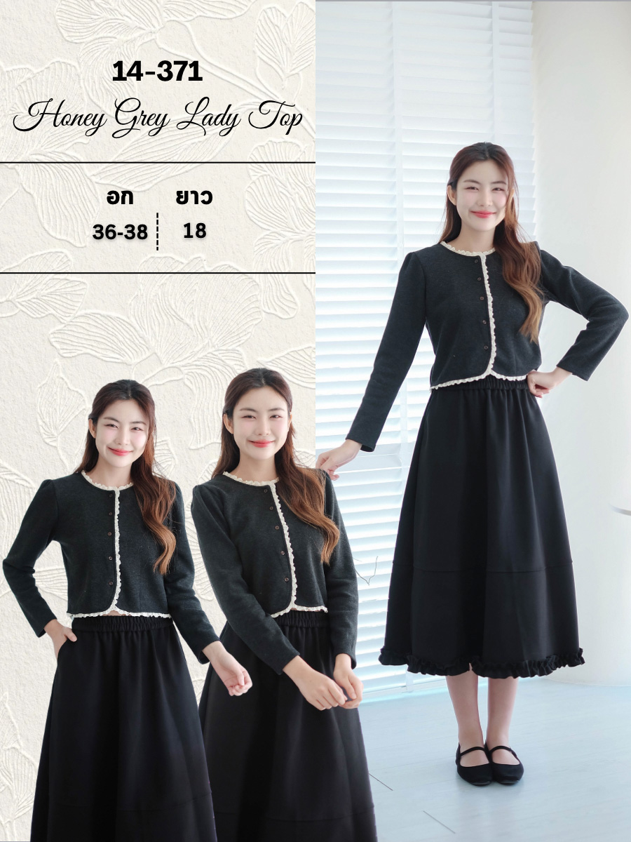 สวยจนต้องร้อง Cardigan ตัวนี้ทำให้ลุคดูแพง'เกินเบอร์'เสื้อสีเทาเข้มทรงสวยผ้า Knit เนื้อแน่นมีความหนาพอเหมาะให้ความอบอุ่นแต่ยังดูสุภาพและมีสไตล์ ตัดขอบคอเสื้อสาบเสื้อและขอบชายเสื้อด้วยระบายลูกไม้สีครีมสุดนุ่มนวล ที่เพิ่มความหวานแบบมินิมอล กระดุมสีน้ำตาลเรียงหน้า แมทช์ง่ายสุดๆ ใส่คลุมชุดเดรสลายดอกไม้ เสื้อยืดกับกางเกงยีนส์หรือกระโปรงทรง A-line ก็ได้ลุคที่ดูแพง พร้อมส่งความอบอุ่นและสไตล์ที่ไม่เคยตกยุค ห้ามพลาดเด็ดขาด!