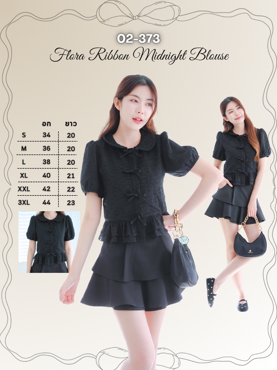 กรี๊ดหนักมาก!งานโบว์ผูกหน้าที่สาวๆตามหา! เสื้อสีดำลุค Coquette Girl ที่ความน่ารักกระแทกตาเต็มๆ ตัวนี้ดีเทลผ้าคือจึ้งมาก เป็นผ้า Texture ลายดอกไม้นูนทั้งตัว ดูแพงมีมิติสุดๆ ไฮไลท์คือ 'โบว์ผูกด้านหน้า 3 ชั้น' เรียงลงมาน่ารักตะโกน! มาพร้อมคอบัวและตัดกับทรงเสื้อชายระบาย 2 ชั้ที่ช่วยให้ดูมีเอว งานคัตติ้งเนี้ยบมาก ที่สำคัญรุ่นนี้"มีซับในเย็บติดทั้งตัว ใส่สบาย ไม่คัน ไม่บาง แมตช์กับกางเกงขาสั้นคือนิพพาน จะใส่ไปคาเฟ่ หรือใส่ไปเดทดินเนอร์ก็เอาอยู่ ของสวยๆ แบบนี้ต้องรีบเก็บค่ะ