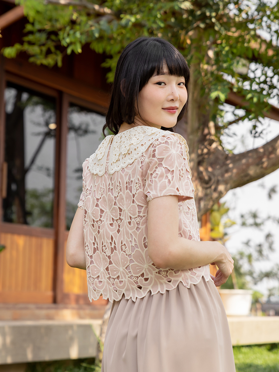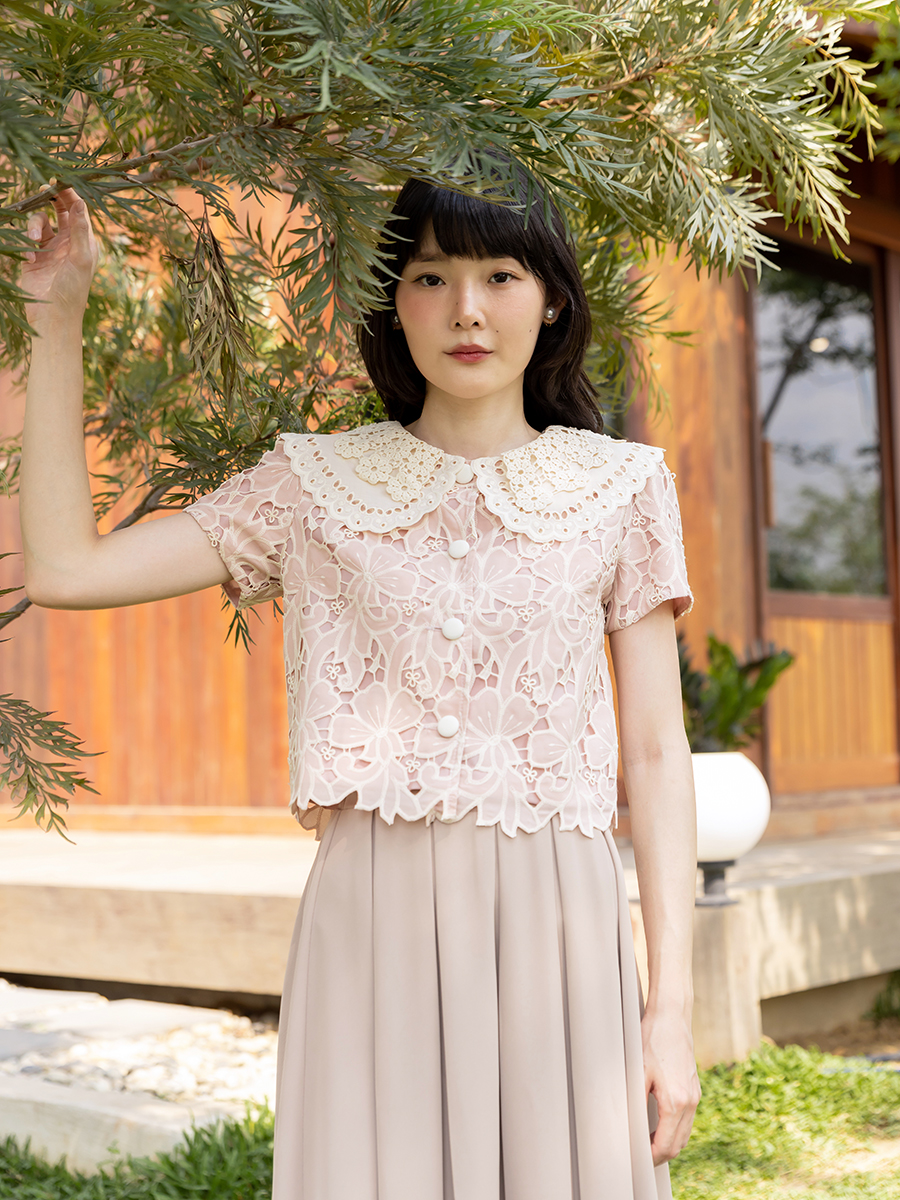 สวยปังไม่ไหว เต็ม 10 ไม่มีหักเลย เป็นไอเท็มที่ภูมิใจนำเสนอมากๆ สาวหวานต้องไม่พลาดกับเสื้อผ้าลูกไม้ญี่ปุ่นงานตัดตามลายลูกไม้อย่างปราณีตเลย ช่วงคอปกเป็นผ้าลูกไม้ทำระบาย 2 ชั้น มีซับในทั้งตัว กระดุมเรียงหน้า โทนสีชมพูนู้ดสวยคลาสิคมากๆ ลุคคุณหนูหวานๆ แมทกับขาสั้นหรือขายาว ดูสวยแพง ใส่ทำงานก็ได้ใส่เที่ยวก็น่ารัก รุ่นนี้จัดไปไม่ผิดหวังจริงๆ