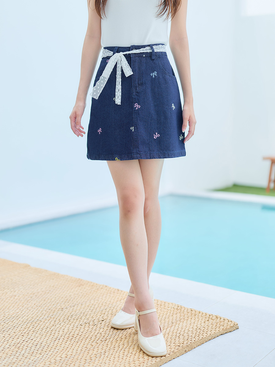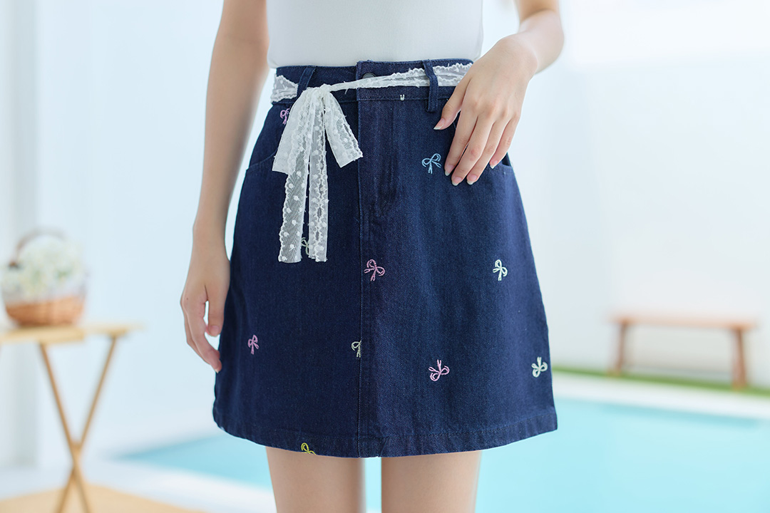 Must have เลยจ้ารายการนี้กระโปรงยีนส์สีเข้มงานปักโบว์สีสวยหวานรอบตัว งานซิปหน้า แต่งกระเป๋าจริง 2 ข้าง ซ้าย/ขวา มีสายผ้าลูกไม้สีขาวให้ด้วยนะคะ มีซับในกางเกง แบบน่ารักๆ ความยาวกำลังสวย แมทกับเสื้อผ้าง่าย