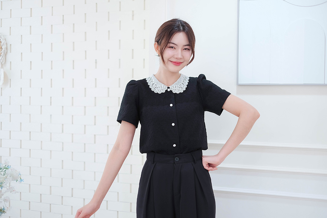 เสื้อลูกไม้ฉลุลายดอกโทนสีฟ้าคือน่ารักเกินต้านมากแม่! สีฟ้าละมุนนีคือแบบสวยหวานกรุบ ใส่แล้วดูผู้ดีสุดๆ มีซับในทั้งตัว ไม่ต้องกลัวโป๊เลยค่า มาพร้อมกระดุมหัวใจมุกเรียงหน้า คอปกลูกไม้ฉลุลายสีครีมเพิ่มความละมุนใจ ชายเชิงทั้งแขนและชายเสื้อคือสวยไม่ไหว แมทช์กับยีนส์ก็ได้ลุคน่ารักสดใส หรือใส่กับกระโปรงก็ดูคุณหนูไปอีก! เหมาะกับเทศกาลวันแม่ที่ใกล้เข้ามาด้วยน้า ต้องรีดจัดก่อนของหมดนะค้า