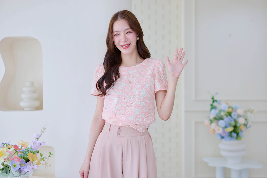 สาวหวานห้ามพลาดเลย ไอเท็มนี้ดีไซน์ได้สวยเก๋สุดๆ แต่งได้ 2 ลุคไม่ซ้ำใคร กับเสื้อแขนสั้นผ้า Cotton เนื้อนิ่มมาก ดีเทลอัดแน่นใช้ผ้าลูกไม้ฉลุลายดีไซน์ตัดแบบเฉียงดันด้วยซับในสีครีม ต่อด้วยเสื้อตัวในเป็นผ้าพื้นสีชมพูได้อารมณ์เหมือนใส่เสื้อ 2 ชั้น ได้ลุคน่ารักๆ หรือแบบปล่อยชายก็ดูเป็นลุคใส่สบายๆ แมทกับกระโปรงหรือกางเกงก็น่ารัก ใส่ทำงานก็ได้ใส่เที่ยวก็น่ารัก รุ่นนี้จัดไปไม่ผิดหวังจริงๆ