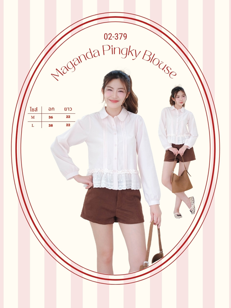 ไอเทมที่สาวๆสายหวานห้ามพลาดกับเสื้อเชิ้ตแขนยาวสีชมพูอ่อนโดดเด่นด้วยดีไซน์คอบัวที่ช่วยเสริมลุคให้ดูน่ารักเพิ่มความเก๋ด้วยงานแต่งระบายลูกไม้ฉลุสีครีมที่ชายเสื้อเป็นเลเยอร์สองชั้น ช่วยเพิ่มวอลลุ่มให้ลุคดูมีมิติกิมมิคความคิวท์อยู่ที่การจับจีบระบายช่วงไหล่ กระดุมเรียงหน้า จะแมตช์กับกางเกงขาสั้นสีขาวให้ดูคุณหนูสุดๆ หรือจะแมตช์กับยีนส์ขายาวก็เปลี่ยนลุคเป็นสาวหวานซ่อนเท่ได้ลงตัว ตัวเดียวจบ ใส่ไปเที่ยว คาเฟ่ หรือใส่ออกงานก็น่ารักจนใครก็ต้องทักแน่นอนค่ะ