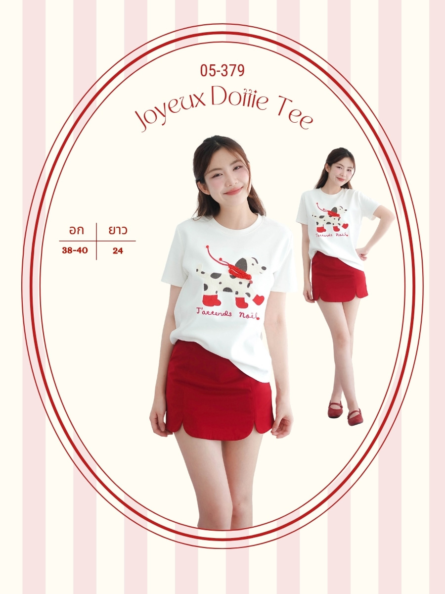 ใครสายคาเฟ่สายคิ้วท์ต้องหยุดดูด่วนกับเสื้อยืดสีขาวดีเทลน้องหมาผูกพันคอแบบ 3D ใส่บูทแดงสุดป๊อปตัดกับเสื้อสีขาวคือขับผิวสุดๆและมีคำภาษาฝรั่งเศสกรุบกริบ"J'attends no?l"ให้ฟีลลูกคุณหนูปารีเซียงเบาๆ ผ้าใส่สบายไม่อึดอัด เหมาะกับอากาศบ้านเราสุดๆ แมทช์ง่ายมากกก จะจับคู่กับกระโปรงแดงแบบก็คอมพลีทลุคหรือจะใส่กับกางเกงยีนส์ตัวโปรดก็ดูเป็นสาวขี้เล่น ใส่ถ่ายรูปยอดไลก์พุ่งชัวร์ ของมันต้องมีติดตู้ไว้เลย ห้ามพลาดเลยค่ะ
