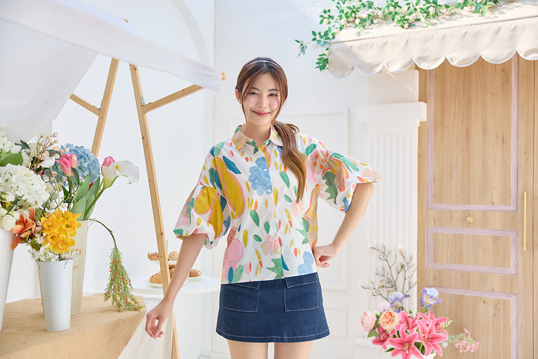 เสื้อเชิ้ตสุดชิคโดดเด่นด้วยลายพิมพ์กราฟิกสไตล์งานวาดมือโทนสีพาสเทลสดใสดูอาร์ตและมีเทสมากค่ะ ทรงเชิ้ตคอปก แขนพองสามส่วนที่ตัดต่อช่วงศอกให้ดูมีวอลลุ่ม มาพร้อมกระดุมผ่าหน้าสีขาวตลอดแนว เนื้อผ้าใส่สบายระบายอากาศได้ดีมาก จะแมตช์คู่กับกางเกงยีนส์ในวันเที่ยวหรือกางเกงผ้าไปทำงานก็คอมพลีทลุคสาวมั่นที่ดูโดดเด่นไม่ซ้ำใคร ลายสวย ทรงเก๋ เอฟด่วนนะค้าา