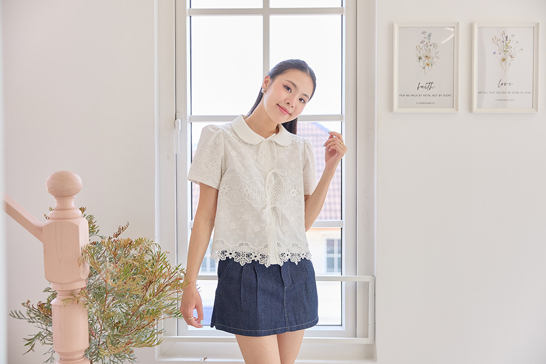 - เนื้อผ้า: Cotton + ลูกไม้