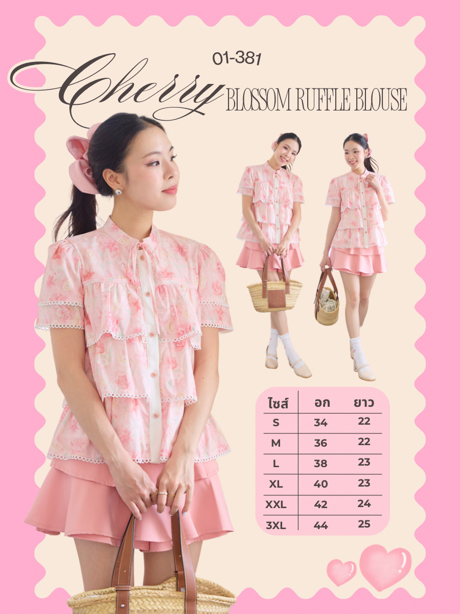 01-381 Cherry Blossom Ruffle Blouse - 6 ไซส์