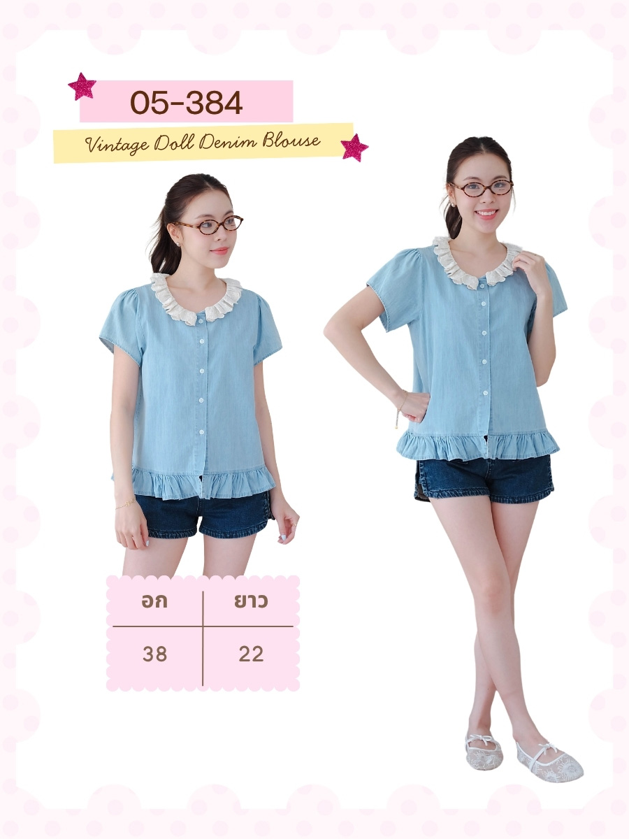 เสื้อแขนสั้นงานผ้าเดนิมสีฟ้าเนื้อนุ่มใส่สบายไม่ร้อน ดีไซน์ด้วยคอปกบัวแต่งระบายลูกไม้ฉลุสีครีมที่ช่วยให้ดูหวานละมุนขึ้นทันที กระดุมเรียงหน้าพร้อมดีเทลชายเสื้อระบายๆ จะหยิบไปแมตซ์กับกางเกงขาสั้นสีขาวในวันชิลๆ หรือใส่คู่กับกางเกงผ้าสีครีมก็ได้ลุคคุณหนูสไตล์เกาหลีที่ดูแพงมาก ใส่ไป Check-in คาเฟ่เก๋ๆ เดินเล่นนิทรรศการศิลปะ หรือจะใส่ไปเรียน ไปทำงาน ก็น่ารักดูสุภาพสุดๆ งานดีไซน์เก๋ไม่ซ้ำใครแถมแมตซ์ง่ายขนาดนี้ ของมันต้องมีติดตู้ไว้นะคะ รีบเอฟด่วน